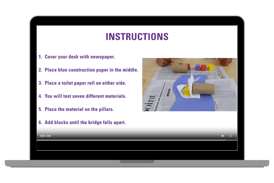 A step-by-step video guides students through investigations. Students can follow along at their own pace as they investigate questions.